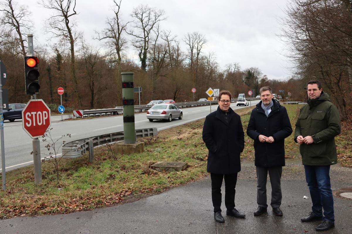 Langen ist ein beliebter Wohnort und begehrt als Wirtschaftsstandort. Kurz: Langen wächst. Und genau deshalb muss auch die Verkehrsinfrastruktur mitwachsen. Ganz oben auf der Prioritätenliste von Bürgermeister Jan Werner steht neben dem gewünschten Anschluss an die Regionaltangente West (RTW) der vierspurige Ausbau der Bundesstraße 486 zwischen der K 186 (Kläranlage) und der Autobahn 5. Dieser war nun auch Thema bei einem Besuch von Christian Hirte, Parlamentarischer Staatssekretär im Bundesministerium für Verkehr, sowie dem Bundestagsabgeordneten Björn Simon im Langener Rathaus.