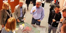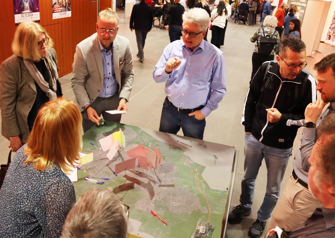 Gelungener Auftakt für die Bürgerbeteiligung im Modellprojekt „Inklusive Innenstadt“: Rund 80 Teilnehmer ließen sich bei einer Informationsveranstaltung in der Neuen Stadthalle von Mitarbeitern der Stadtverwaltung und des Verkehrsplanungsbüros Planersocietät aus Dortmund Ziele und Ablauf erläutern und arbeiteten auch bereits in ersten Gesprächsrunden an Ideen und der Identifizierung von Problemstellen in der Stadt. Gleichzeitig wurde die Online-Beteiligung gestartet, an der sich alle Bürgerinnen und Bürger beteiligen können.