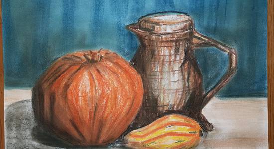 Die in den Jahren 2022 bis 2025 gefertigten Bilder zeigen in Pastellkreide oder Ölkreide Stillleben (drinnen) und Landschaftsbilder (draußen), mit denen die Künstlerin auf der Grundlage von meist eigenen Fotographien die Stimmung des Motivs einfangen und sichtbar machen will. Zuweilen experimentierte sie auch mit verschiedenen Malweisen und Farbigkeiten, so dass sich einige Werke von der realen Vorlage entfernen und in der Ausstellung als Motivdoppelungen in reizvollem Gegenüber zu entdecken sind.