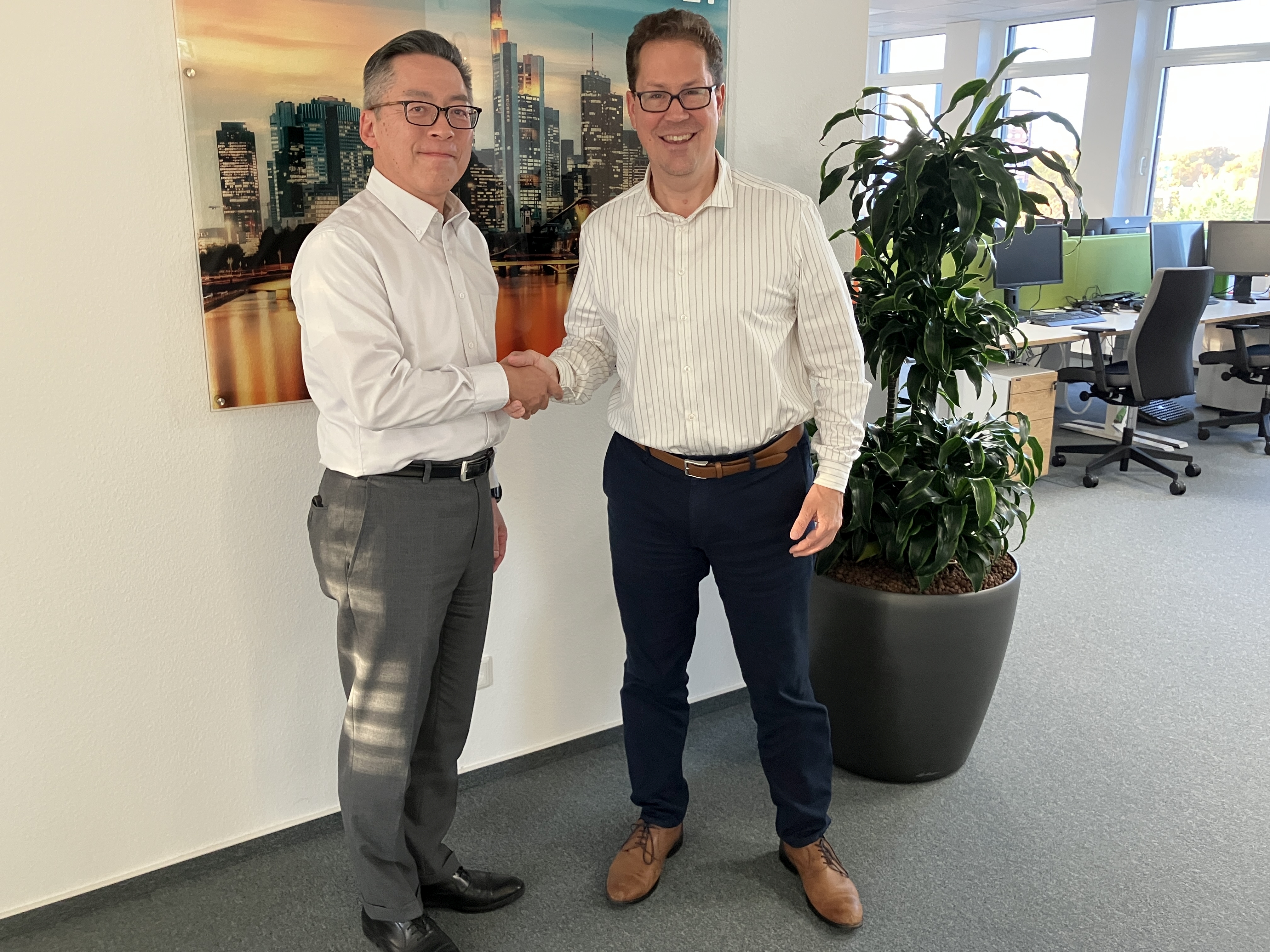 Seit 2020 ist die Sparte vollständig im Besitz der japanischen KAGA Electronics Co. Ltd., erfuhr Bürgermeister Jan Werner beim Besuch von Fuminobu Miyake (Chairman & CEO). 42 Mitarbeiter in Europa (40 in Langen, zwei in Mailand) sind für den Vertrieb von Halbleitern und komplexen Elektroniklösungen in Europa und USA verantwortlich. Fuminobu Miyake, bereits seit 1990 im Unternehmen und seit der Übernahme durch KAGA Geschäftsführer, schätzt das gute Arbeitsumfeld in Langen und die Räumlichkeiten im Neurott Park. Zudem lobt er die stets gute Zusammenarbeit mit der städtischen Wirtschaftsförderung, die KAGA FEI unter anderem bei Visafragen für ausländische Mitarbeiter unterstützt.