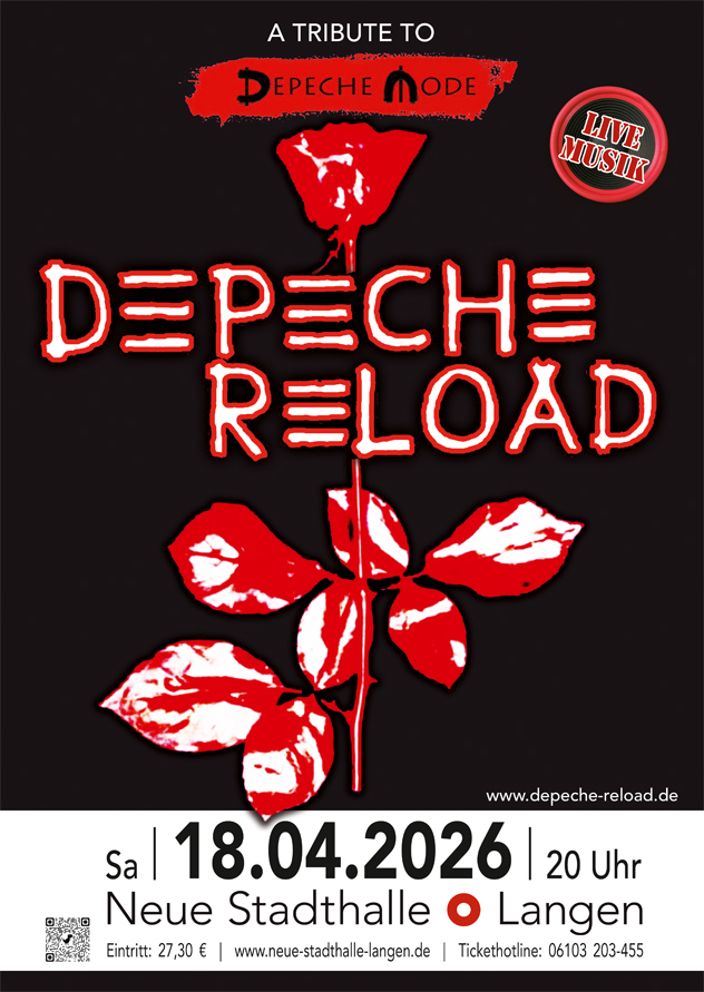 Tribute To Depeche Mode - DEPECHE RELOAD zollen ihren Helden, den britischen Synthie-Pop-Königen von DEPECHE MODE, endlich wieder mit handgemachter Musik und einer authentischen Bühnenshow ihren Tribut. Ganz großes Kino, kollektives Ausrasten inklusive. Das Quintett formierte sich im Herbst 2007, um die wegweisenden Songs einer der kultigsten Bands der 80er- und 90er-Jahre zu zelebrieren. Sie sind wahrscheinlich die einzige DM-Tribute-Band, die diese Musik komplett live spielt - ohne irgendwelche Loops oder Samples im Hintergrund laufen zu lassen. Das Programm beinhaltet alle Hits von Dave Grahan, Martin Gore und Andrew Fletcher, wie beispielsweise ´Enjoy The Silence´, ´Master & Servant´, ´Personal Jesus´, ´Just Can´t Get Enough´ oder ´People Are People´, sowie spezielle Fan- und Bandlieblinge, die von den Originalen seit Jahren auf der Bühne eher ignoriert werden. Die große DM-Live-Party kann beginnen!