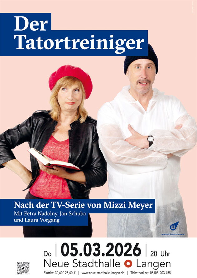 Heiko „Schotty“ Schottes Arbeit fängt dann an, wo andere sich vor Entsetzen übergeben. Wenn es einen Tatort zu säubern gibt, ist er zur Stelle. Blut wegwischen, Überreste entfernen – alles kein Problem für den Tatortreiniger. Dabei trifft der kauzige Schotty häufig auf sehr skurrile Typen und der Theaterabend in der Langener Stadthalle begleitet ihn dabei, bietet vergnügliche Einblicke in den Berufsalltag des Angestellten der Hamburger Gebäudereinigungsfirma Lausen und in seine philosophischen Schlussfolgerungen. Er hat eben ein sehr pragmatisches Verhältnis zum Tod. Immer wieder wird ihm ins Bewusstsein gerufen, dass an so einem Menschen vielleicht doch mehr dran ist, als was man hinterher wegschrubben muss.