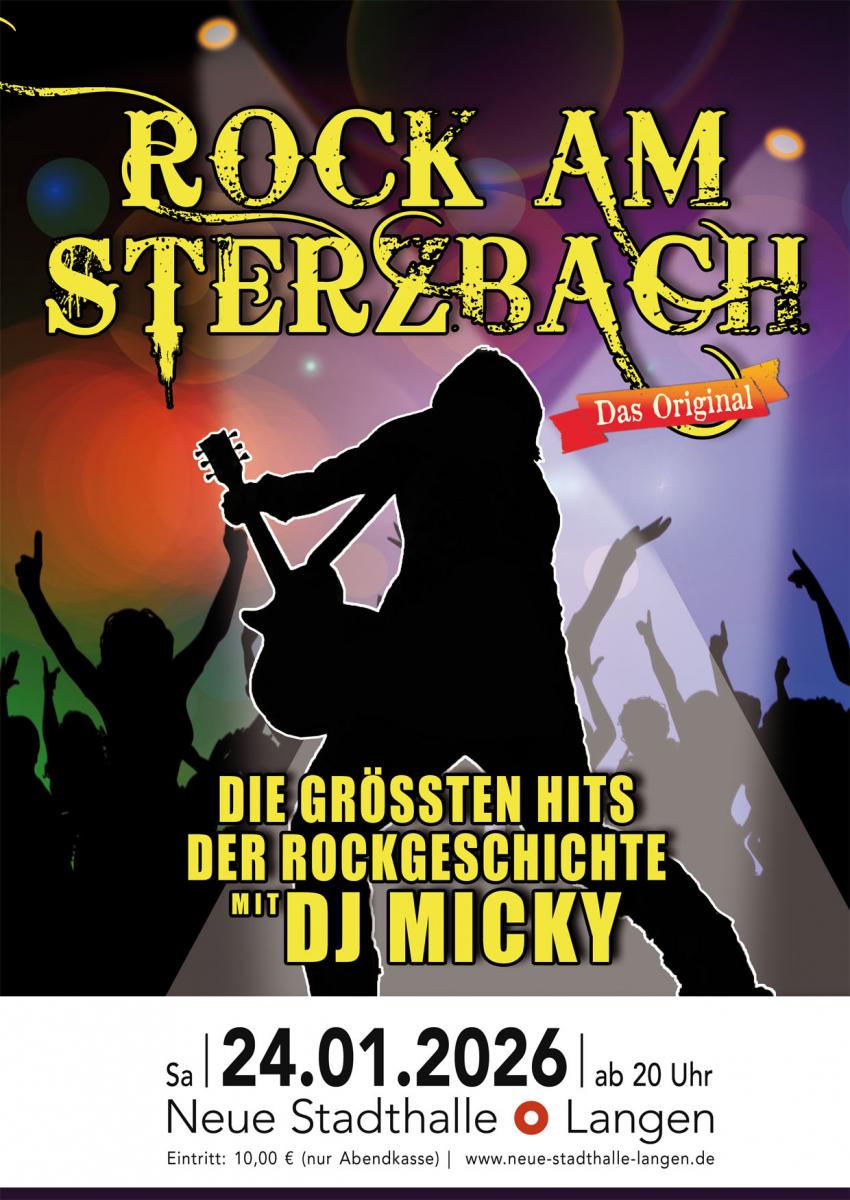 Die Rückkehr eines legendären Party-Formats. Mit den größten Hits der Rockgeschichte starteten 2004 die wilden und erfolgreichen Rockpartys in der Neuen Stadthalle. In 2026 regieren nun wieder die harten Gitarren und die ganz großen Rockmelodien in der Sterzbachstadt. DJ Micky nimmt sein Publikum mit auf eine Reise quer durch die Musikgeschichte: die wilden, ausufernden Siebziger, die glitzernden und extravaganten Achtziger, die rudimentären und depressiven Neunziger und der Aufbruch und die Wiederentdeckung der Rockgitarre im neuen Jahrtausend. Ein (fast) vergessener Sound, der scheinbar nie altert und für viele noch heute das Nonplusultra, zumindest einen ganz wichtigen Teil ihrer Jugend darstellt. Langen trifft sich. Langen feiert. Langen rockt.