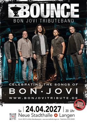 In den mehr als 17 Jahren ihres Bestehens hat die Band in so ziemlich jedem angesagten Club, jeder Konzerthalle und bei einschlägigen Festivals gerockt – und das in beständiger Besetzung. Dreh- und Angelpunkt dieser energiegeladenen Show ist der charismatische Sänger und Frontmann Olli Henrich. Er steht dem Original in nichts nach und wurde wegen seiner unglaublichen Stimme von der Presse sogar schon als „der bessere Bon Jovi“ gehandelt. BOUNCE bringen mit eigener Note und trotzdem originalgetreuen Sounds und Arrangements das nahezu unerschöpfliche Repertoire aus fast Jahren BON JOVI auf die Bühne. Welthits, die Rockgeschichte geschrieben haben, Rocksongs, die an Power nicht zu überbieten sind, und Balladen, bei denen nahezu jeder Musikliebhaber dahinschmilzt. Vom ernsten Hit ‚Runaway‘ über All-Time-Faves wie ‚You Give Love A Bad Name‘, ‚Livin‘ On A Prayer‘, ‚Keep The Faith‘, ‚Bed Of Roses‘, ‚It’s My Life‘ oder ‚Have A Nice Day‘ bis hin zu aktuelleren Songs wie ‚We Weren’t Born To Follow‘ wird wirklich nichts ausgelassen. BOUNCE ist zweifelsohne die authentischste BON-JOVI-Tribute-Band Europas.